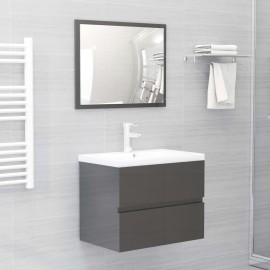 2 Piece Bathroom Furniture Set Grey Chipboard