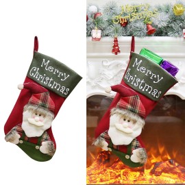 2Pcs Christmas Decoration Stockings Heart Pattern Plush Plaid Xmas Socks Dwarf Gift Socks for Children Festival Party Decor Socks
