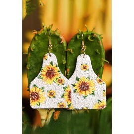 Leopard Print Sunflower PU Leather Earrings